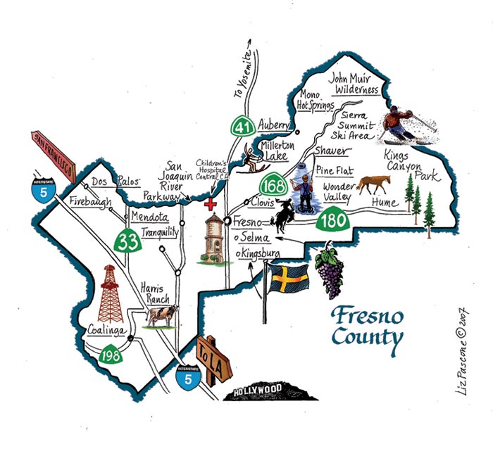 Fresno County is a county located in the Central Valley of the U.S. state of California, south of Stockton and north of Bakersfield. As of the 2010 census, it is the tenth most populous county in California with a population of 930,450,and the sixth largest in size with an area of 6,017.4 square miles (15,585 km2). The county seat is Fresno. Fresno is the fifth largest city in California.