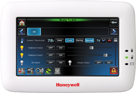 Control Z-Wave enabled thermostats, lights and shades at the touchscreen or on mobile devices around the premises when using Wi-Fi.